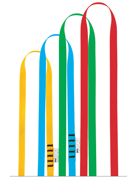 간단하게 휴대하여 확보 장비나 확보물에 설치 하거나 확보지점을 연장할 때 사용하는 나이론 슬링 임.