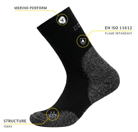 - 방염 양말은 32%의 Wool 소재로 보온성 및 착용성, 쾌적함을 제공.