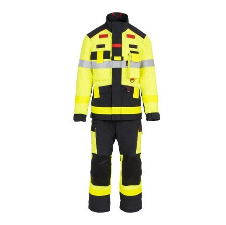 Teijinconex®, Twaron®, antistat 의 소재를 사용하여 산불진화 또는 특수구조복으로 사용되어지는 상/하의 일체형 보호복.