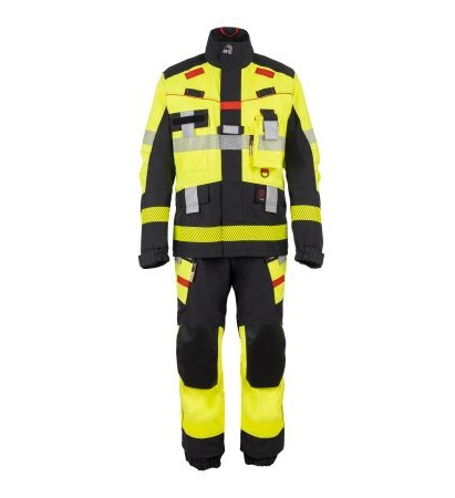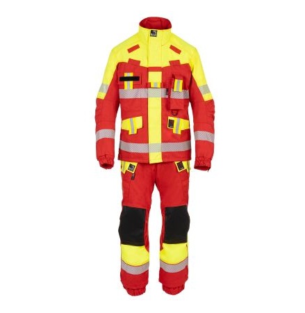 Teijinconex®, Lenzing™ FR, antistat 의 소재를 사용. 고시인성으로 대원들의 위치 파악이 용이하며 외피와 내피 분리가 2겹의 산불진화 및 특수구조복.
