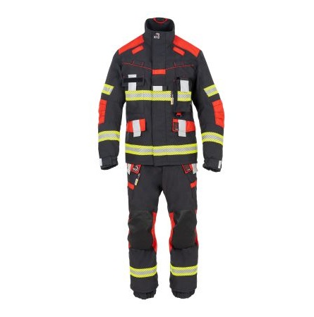 Teijinconex®, Twaron®, antistat 의 소재를 사용. 외피+중간방수층+내피로 구성된 3겹의 산불진화 및 특수구조복.