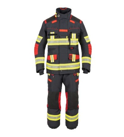 Nomex®, Kevlar®, antistat 의 소재를 사용. 열에 가장 많이 노출되는 부위(FR4 zone)에 2중으로 단열층을 추가한 4겹의 산불진화 및 특수구조복.