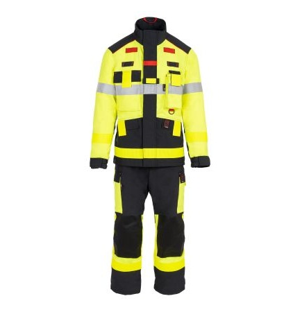Lenzing™ FR, Teijinconex®, antistat 의 소재를 사용. 고시인성으로 대원들의 위치 파악이 용이하며 외피와 내피 분리가 가능한 2겹의 산불진화 및 특수구조복.