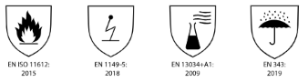 - 인 증 : EN ISO 11612:2015(열과 화염으로부터 보호 기준),