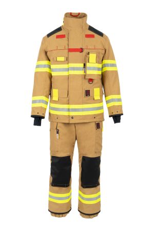 - 화재 진압 및 구조 활동에 적합한 3겹(외피+중간방수층+내피)의 특수구조복.