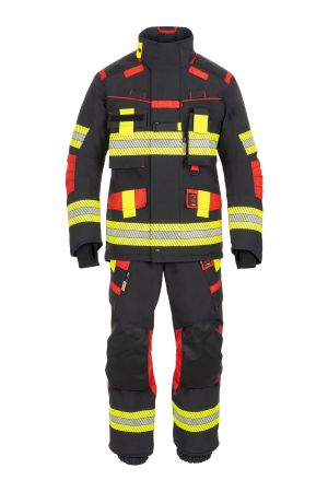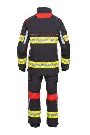 - 화재 진압 및 구조 활동에 적합한 3겹(외피+중간방수층+내피)의 특수구조복.
